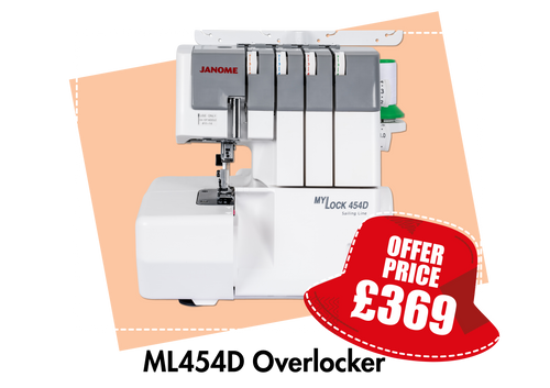 On Sale! Quick view JANOME Janome ML454D Overlocker - New Model with easy thread lower looper - SAVE £60 Autumn Promotion SAVE £60 Offer ends 31st December NEW MODEL - This NEW 3/4 thread Overlocker, Model ML454D from JANOME has an improved fabric feed. An 8-piece feed dog enables fabrics... RRP: Was: £429.00 Our Price Now: £369.00 Add to Cart Compare